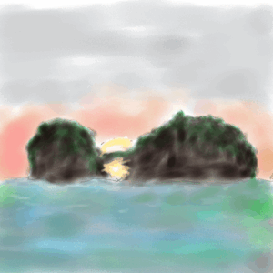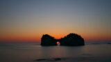 ぽっかり空いた海蝕洞の隙間から垣間見る夕日は何と言ったらいいのか・・