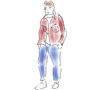ややゆったり目で、胸ポケットは蓋なしの斜めの胸ポケット。