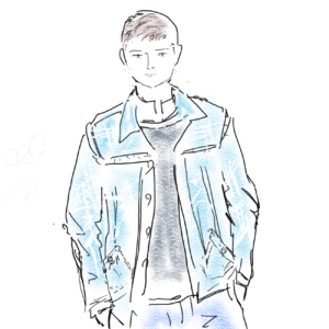 ちょっと遣れた水色のウエストポケットのGジャン